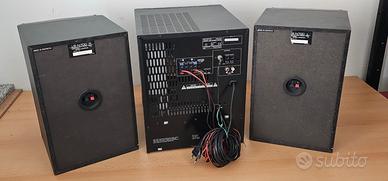 Hi-fi Kenwood - Sistema stereo RXD-700 con cavo di alimentazione - 2 altoparlanti LS-N700 con cavi di collegamento Specifiche generali modello: RXD-700 - potenza RMS: 2 x 100 W - dispone di un display con varie modalità di illuminazione - impostazioni audio automatiche come ROCK, JAZZ, POP... ecc. - equalizzatore elettronico con regolazione completa e possibilità di programmare le proprie impostazioni - l'amplificatore ha un sistema di amplificazione dei bassi e SURROUND (possibilità di collegare altoparlanti surround aggiuntivi) - radio digitale AM, FM con RDS - lettore CD a tre dischi - lettore di cassette a due slot con funzione AUTO REVERSE - due prese per microfono e una presa per cuffie integrate sul pannello frontale - altoparlanti: Bass Reflex contenitore, frontali in legno e plastica, griglie rimovibili, 3 vie, 2x100W 6Ω RMS, connettore/terminali per cavi nudi - connettori sul pannello posteriore della torre: antenna FM, AM, ingresso RCA/AUX, interruttore Surround on/off, 2 cavi per altoparlanti - lunghezze dei cavi: cavo di alimentazione 1,8 m- dimensioni torre: larghezza 26,8 cm, altezza 33 cm, profondità 34 cm - dimensioni altoparlanti (2 pz.): larghezza 21,7 cm, altezza 33 cm, profondità 31,5 cm. Condizioni estetiche: visibili nelle foto. Usato, in buone condizioni funzionante .