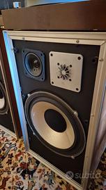 Diffusori inglesi eleganti, suono ricco e dettagliato. Ottimi per completare un impianto hi-fi classico. Legno con segni-