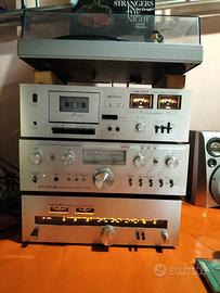 impianto composto da pre-ampli + tuner+giradischi + cassette dec+casse il tutto in perfette condizioni neanche un graffio cheise di elevato spessore come si costruiva una volta, non spedisco ritiro in loco dopo visura e ascolto