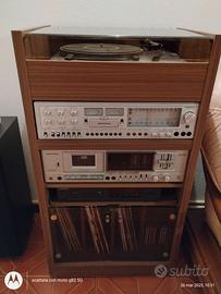 hifi Grundig anni 80 con receiver r45 piatto ps1020 e piastra cnf 350 con mobile marrone incluso a 500€