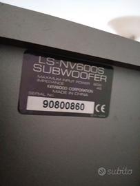 Sistema HiFi Kenwood NV600 radio, lettore cd e musicassette, con altoparlanti satellitari e subwoofer.