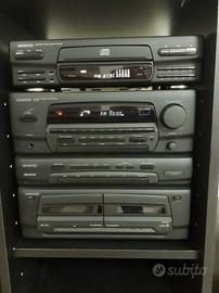 Impianto stereo hifi Kenwood Perla nera anni 90. Ottimo stato e funzionante. completo di mobiletto originale.