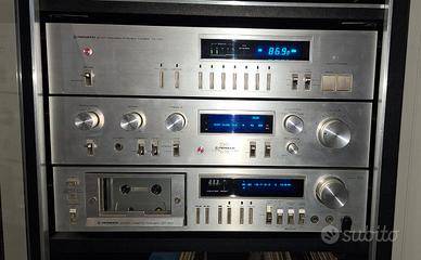 HiFi Pioneer composto da piatto automatico, piastra( da sostituire cinghia), sintonizzatore e amplificatore + mobile originale Pioneer + casse Jamo Classic 8. libretti istruzione originali + cuffie Vintage Inno-Hit. SOLO RITIRO. Non vendo separatamente. NO TRATTABILE.