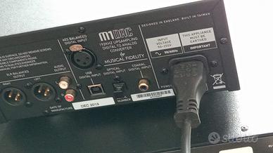 Il DAC Musical Fidelity M1 è un convertitore digitale-analogico asincrono a 24 bit/192 kHz progettato per la riproduzione audio di alta qualità, che utilizza un chip Burr-Brown DSD1796 e un sistema avanzato di riduzione del jitter. È dotato di opzioni di ingresso versatili (coassiale, TOSlink, AES/EBU e USB) e produce un suono caldo e avvolgente. Caratteristiche principali e prestazioni • Prestazioni audio: il DAC M1 offre un'eccellente risoluzione a 24 bit/192 kHz con basso jitter (<12 picosecondi) e distorsione molto bassa. • Ingressi: include quattro ingressi digitali: USB asincrono, coassiale, TOSlink (ottico) e AES/EBU. • Uscite: Dispone sia di uscite single-ended (RCA) che bilanciate (XLR). • Costruzione: Utilizza un alimentatore a commutazione con filtraggio a induttanza, progettato per prestazioni audio di fascia alta. • Caratteristiche sonore: Descritto come “meravigliosamente musicale”, offre un palcoscenico sonoro chiaro, aperto e ampio