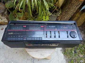 Boombox anni 80 in buone condizioni estetiche (solo qualche segno). Necessita di una revisione nel compartimento cassette (credo siano le cinghie da cambiare), la radio come l' ingresso ausiliario sono funzionanti. Formula visto e piaciuto.