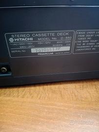 Registratore stereo per cassette Hitachi. - Controlli di potenza assistiti. - Indicatore di livello VU per canale sinistro e destro. - Contagiri nastro. - Sistema Dolby NR e Dolby System. - Selettore input e bias. - Equalizzatore e controllo di output.in ottime condizioni estetiche e funzionante 4 cinghie nuove