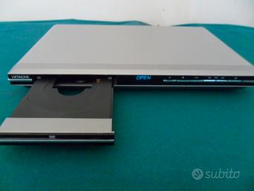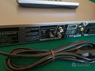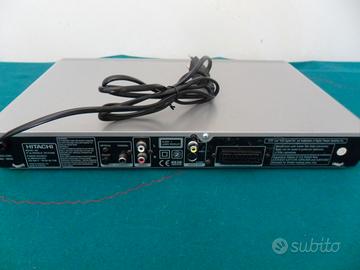 Lettore dvd Hitachi tenuto bene, funzionante, ha la presa scart per collegarlo ai vecchi televisori, qualche piccola righetta sul coperchio, ha il suo telecomando.