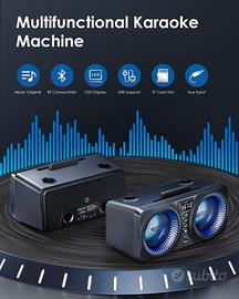 Macchina Karaoke portatile HIUYRFS con 2 microfoni, con le seguenti caratteristiche: