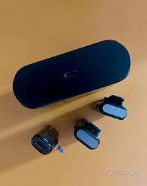 Hollyland Lark C1 | con 14 mesi Garanzia | Microfono per iPhone Microfono iPhone Certificato MFi, Qualità Audio Hi-Fi. Il sistema microfonico wireless per 2 persone Hollyland Lark C1 è autorizzato con certificazione MFi ed è ricercabile nel database degli accessori con licenza MFi. Con un'interfaccia Lightning certificata MFi, una frequenza di campionamento di 48 kHz e una profondità di 16 bit, Lark C1 offre un audio digitale cristallino con una risposta in frequenza di 20 Hz-20 kHz. Viene venduto in confezione originale (vedi foto) con la GARANZIA di oltre 14 mesi. Cavetti originali e cuffiette anti rumore (in foto) Cancellazione del Rumore Selezionabile compatibile con tutti i dispositivi Apple con porta audio Lightning, come iPhone 14/13/12/11, Pro/Pro Max Series, iPad dalla 5a alla 9a generazione, iPad mini 2/3/4/5, ecc. COMPATTO E LEGGERO. Ogni microfono può durare per 8 ore con una carica completa. USATO POCHISSIMO, come nuovo. Cambio solo per attacco diverso dal cellulare che ho ora. Spedisco subito e fornisco eventuale prova di funzionamento tramite video.