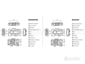 1 alimentatore per caricatore (che può essere usato anche per tenere accesi sia il trasmettitore che il ricevitore per inviare segnale hdmi da un pc a un monitor per esempio)