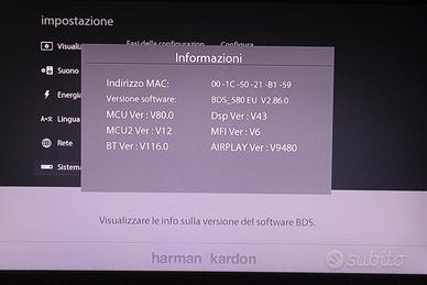 In vendita sistema home Theatre 5.1 marca Harman Kardon modello BDS-580 da 5x65 watt rms Con entrate ed uscite hdmi (full hd con supporto 3d), numerose entrate analogiche e digitali nonchè ovviamente il supporto per CD / DVD / Bluray.