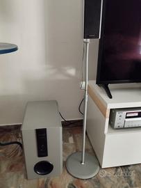 100Wx5, molto potente, subwoofer attivo, 5 satelliti, tutto tenuto bene come nuovo, regalo le due piantane in foto, non spedisco (troppo complicato impacchettare il tutto anche per il peso ) consegna o ritiro a mano in zona, solo realmente interessati , grazie.