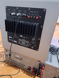 Il subwoofer ha le regolazioni di filtro (da 40 Hz a 150 Hz) e fase, visibili nel pannello posteriore.