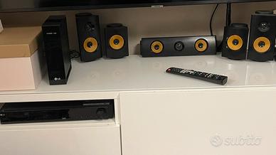 Vendo sistema home cibema della LG, 3D con lettore bku-ray, con 5 casse piu il subwoofer, le due casse posteriori sono con collegamento bluetooth tramite un ricevitore collegato alle stesse.