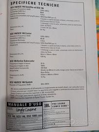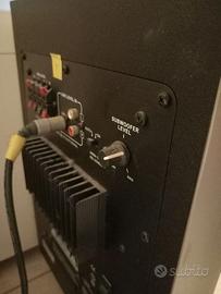 L’Harman Kardon AVR 130 è un ricevitore AV progettato per l’home theater, il ricevitore offre una serie di funzionalità avanzate per migliorare l’esperienza audio e video. Il ricevitore offre una potenza di uscita di 40 watt per ogni canale su 6 canali, per un totale di 240 watt. Supporta una vasta gamma di formati audio, tra cui Dolby Digital, Dolby Pro Logic II e DTS, è dotato di molte funzionalità avanzate, tra cui il controllo del volume dinamico, l’equalizzazione dei diffusori e il ritardo del segnale per i diffusori posteriori. Inoltre, è possibile configurare il ricevitore per gestire due zone audio, consentendo la riproduzione di due fonti audio diverse in due stanze diverse. Il ricevitore dispone anche di molte opzioni di connettività, tra cui ingressi audio analogici e digitali, ingressi video compositi, S-video e componenti, e uscite audio e video. Inoltre, è dotato di un’interfaccia utente intuitiva e di un display a cristalli liquidi. subwoofer jbl scs 140 Il subwoofer SCS140 rende MOLTO BENE perché i diffusori JBL sono usati in molti cinema con tecnologia THX, Dolby Digital e DTS in tutto il mondo. La stessa tecnologia audio avanzata rende questi sistemi perfetti per godersi i propri film preferiti in casa. SUBWOOFER Descrizione: Subwoofer 100-Watt Risposta In Frequenza: 35Hz – 160Hz (–6dB) Tenuta In Potenza: 100 watt RMS Dimensioni: 413mm x 280mm x 349mm (H x L x P) Peso: 12.7kg