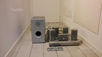 Vendo, causa inutilizzo, Home Teather Hitachi HTD-K160 composto da: lettore DVD amplificato da 350W di potenza (5 casse da 50W + Subwoofer da 100W) completo di telecomando e manuale. Usato pochissimo e praticamente nuovo.