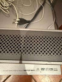 Sistema lettore dvd + altoparlanti 5.1, 3 casse frontali, subwoofer, 2 casse retro senza fili.
