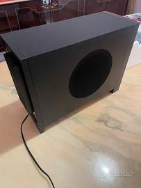 Inclusi: subwoofer, 4 diffusori, telecomando, cavi, piedistalli da pavimento e staffe per il fissaggio a muro.
