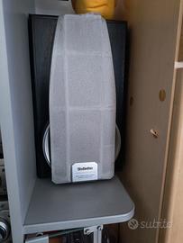 Vendo per mancato utilizzo stero technics sh-dv290 usato ma perfetto e funzionante in tutte le sue parti. Il TECHNICS SL-DV290 è un sistema Mini Audio che raggruppa quattro componenti e cinque speaker. I componenti sono: un processore del suono modello SA-DV90 con Woofer S. digitale (aggiunge potenza ai bassi) anteriore: 2 x 65 watt (8 Ohm), centrale: 80 watt (8 Ohm), Surround, 2 x 40 watt (8 Ohm) (tutte le valutazioni a 1kHz, THD 10%) Processore audio Dolby Digital / DTS / multicanale (SH-DV290): compatibile con Dolby Digital, uscita DTS. Modalità surround multiple: posteriore virtuale, multi posteriore, super surround, messa a fuoco centrale, modalità Pro Logic, modalità EQ regolabili, timer di riproduzione (per tutte le sorgenti), timer di registrazione (dalla radio), timer di spegnimento, orologio; un sintonizzatore/amplificatore stereo modello ; un lettore DVD/CD modello SL-DV290, cambia multilettore 5 DVD/CD, riproduce DVD/DVD-RAM/DVD-A/DVD-R/VCD/ e CD/CD-R/CD-RW, MP3, WMA e amp, dischi JPEG, riproduzione casuale, ripetuta, programmabile, selezione del disco; un doppio deck a cassette stereo modello RS-DV290 con Dolby NR (riduzione del rumore), registrazione da CD, radio o nastro su nastro (solo deck 2). I diffusori sono: Parte anteriore (SB-DV290): design a 3 vie, porta bass reflex. Bassi: 17 cm, bassi/medi: 12 cm, tweeter: 6 cm. Gamma di frequenza 8 Ohm, 46 - 36.000 Hz Centro (SB-PC95): design a 2 vie, porta bass reflex. Bassi/medi (x2): 8 cm, tweeter: 6 cm. 8 Ohm, gamma di frequenza 115 - 20.000 Hz. Surround (SB-PS95): design a 1 via. Altoparlante a gamma completa: 8 cm, 8 Ohm, gamma di frequenza 150 - 18.000 Hz compreso nel prezzo il mobiletto visibile in foto. Possibile ritiro in zona e/o spedizione a carico dell'acquirente. Prezzo leggermente trattabile.