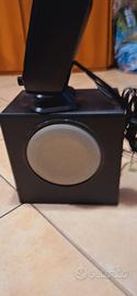 Come da foto, perfettamente funzionante. Il prodotto nasce per connessione a PC per Gaming, ma l'ho sempre utilizzato con la TV come home theatre 2.1. basta collegarlo all'uscita cuffia. Caratteristiche consultabili su WEB