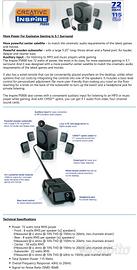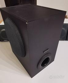 Perfettamente funzionante. Sistema home theatre p580 Key Specifications: System Configuration: 5.1 channel (5 satellites + subwoofer) Total Power Output: 47 Watts RMS Frequency Response: 40 Hz - 20 kHz Features: Wired remote, headphone jack, magnetic shielding Subwoofer: Wooden construction