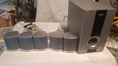 Sistema Home theatre Amstrad DS 651 Subwoofer amplificato e 5 casse satelliti 5 canali +1 subwoofer ingresso cavo din 9 pin (segnale audio e pin di accensione) in ottimo stato funzionante.