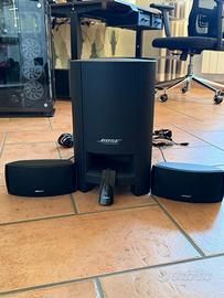 Vendo sistema Home Theatre BOSE in perfette condizioni , usata da vero amatore ,comprende subwoofer e 2 potenti altoparlanti, completo di telecomando ,cavi vari e cavo ottico .Riproduce un suono che solo Bose riesce a dare, realistico in 3D di elevata qualità , vendo per passaggio a livello superiore sempre ed assolutamente Bose.