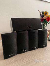 Vendo sistema Home Theatre Onkyo 5.1 in ottimo stato. Qualità del suono eccellente. 2 altoparlanti anteriori, 1 diffusore centrale e 2 diffusori surround posteriori con codifica a colori , 1 subwoofer con il suo cavetto. Potenza nominale RMS: 130W; canali di uscita audio: 5.1; altoparlanti anteriori a 2 vie. Valore del nuovo circa 700€. Vendo causa trasferimento.