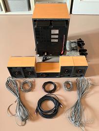 Home Theatre Speaker System Sony SA-VE2M 5+1 composto da 2 speaker anteriori, 1 centrale, 2 posteriori surround e 1 subwoofer, tutti color legno. Il sistema Sony SA-VE2M ha una potenza di 100 W. Gli speaker frontali hanno coni da 8 cm, impedenza di 8 ohms, sensibilità 86 dB, intervallo di frequenza 28 Hz-20000 Hz, dimensioni 105x153x127 mm, peso di 1.2 kg. Lo speaker centrale ha 2 coni di 5 cm, impedenza di 8 ohms, sensibilità 88 dB, intervallo di frequenza 28 Hz-20000 Hz, dimensioni 200x79x130 mm, peso di 0.8 kg. Il subwoofer ha un cono di 20 cm, intervallo di frequenza 28 Hz-200 Hz, dimensioni 270x325x398 mm, peso di 10 kg. Sono inclusi cavetto jack per il collegamento del subwoofer e 5 cavi di collegamento degli speaker. Staffe di fissaggio speaker frontali a muro. Manuale. Imballaggi originali. Perfettamente funzionante. Vendo per adattarmi ad un ambiente più piccolo. Potete confrontare il prodotto sui più utilizzati siti di vendita online.
