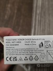 Auricolari wireless Honor Choice X7 Lite. - Design compatto e leggero. - Custodia di ricarica inclusa. - Tecnologia ANC. Confezione sigillata e chiusa
