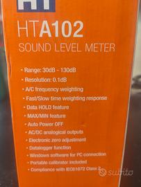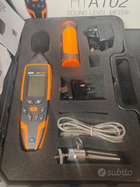Apparecchio HT nuovo con garanzia per rilevamento del rumore. Misura del livello di pressione sonora. misura in frequenza tramite curva A o C, uscita analogica AC/DC utilizzabile con multimetri e/o datalogger esterni. Collegamento a PC tramite software Sound Link. CD per installazione software.