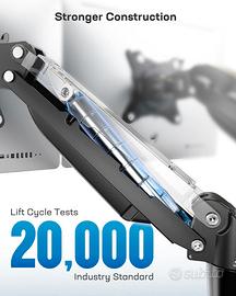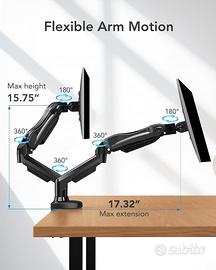 [Regolabile] Il supporto per doppio monitor può rimanere completamente stabile in qualsiasi angolazione senza alcun lavoro aggiuntivo. Rispetto ad altri metodi di regolazione che richiedono la regolazione ripetuta delle viti, questo supporto per monitor per PC per 2 monitor è facile da usare e ha un intervallo di inclinazione da -50° a +35°, più girevole a 180° e rotazione di 360°, in modo che lo schermo possa essere sollevato fino a 15,6 pollici dalla scrivania con una sola mano.