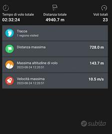 Drone completo con sua scatola originale usato molto poco, pari al nuovo –. Perfettamente conservato. Caratteristiche principali: Peso < 250 g (non richiede patentino A1/A3 in molte situazioni) Riprese 4K Gimbal a 3 assi con fotocamera 4K, che adotta un sensore CMOS da 1/2.6 pollici, il drone supporta video fluidi 4K/30fps H.264 100Mbps e stabilizzazione Return to Home GPS + modalità intelligenti Batteria 7,2V 3000 mAh 40 min. di volo, telecomando con display digitale ad alta luminosità consente di tenere traccia dei dati di telemetria di volo in tempo reale . Molto stabile e facile da pilotare, perfetto per principianti e riprese da viaggio, in dotazione (borsa per il trasporto, 1 batteria, cavetterie, eliche di ricambio, carica batterie multiplo, piccolo cacciavite per lo smontaggio delle eliche) Formula vendita visto e piaciuto Per informazioni Danilo 3475373023