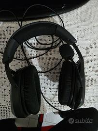 Cuffie gaming hyperx,top di gamma per il gameplay. Se cerchi la comodità e l'insonorizzazione del suono sono le Cuffie che fanno per te,usate 2 volte, con scatolo originale e tutti gli attacchi jack per console e pc. Se avete bisogno di altre foto,informazioni, non esitate a chiedere.