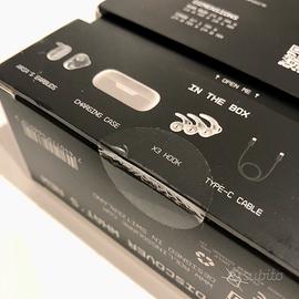 vendo set di auricolari bluetooth creato da Rolling Squarr. Questi auricolari sono unici nel loro genere perché sfruttano il meccanismo naturale dell’aria per progare il suono, pur non occludendo completamente il canale uditivo. Questo non solo comporta una migliore salute dell’orecchio, ma un minore fastidio sull’utilizzo prolungato, senza considerare la migliore sicurezza se usato per andare in bici ne traffico. É inclusa anche una custodia bianca (vedi ultima foto). Il prodotto é nuovo, mai usato. Ne ho anche una versione nera, usata poco.