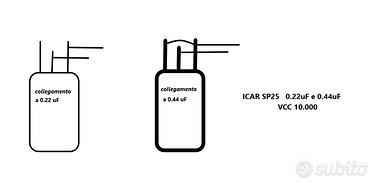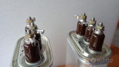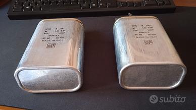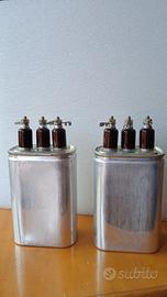 Una coppia di ICAR SP25 carta-olio con tre terminali, due valori in un condensatore (0.22uF e 0.44uF), rarissimi. Disponibili foto dei valori con il tester. Altezza cm.18 compresi i terminali. Spedizione tramite corriere inclusa nel prezzo.