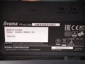 MONITOR GIREVOLE E REGOLABILE, MARCA IIYAMA PROLITE XB2483HSU, MOD. PL2483H, PROVVISTO DI CAVO DI ALIMENTAZIONE disponibili piu pezzi