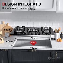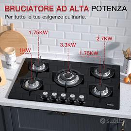 5 Burner Gas Hob Self Sufficient Built-in Hob Natural Gas/Propane Thermocouple Safety Il pacco è nuovo al 100%. Mai aperto e completamente sigillato.