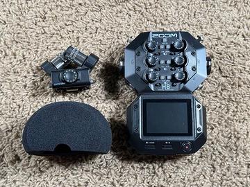 con 8 ingressi, 12 tracce, un box XY a capsula e uno schermo antivento in schiuma. Ottimo registratore Zoom H8 Handy Recorder di seconda mano. È stato utilizzato solo poche volte, poi è stato riposto e non serve più: funziona perfettamente e si accende senza problemi. In dotazione: capsula microfonica XY originale, scatola originale e schermo antivento in schiuma in omaggio. Lo schermo presenta ancora la pellicola protettiva. Il registratore è in ottime condizioni, senza segni evidenti di usura. La scatola esterna presenta lievi segni dovuti alla conservazione.