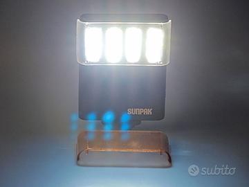 SUNPAK illuminatore video-foto a 12 LED ruotabili con 2 filtri. Funziona a batterie, piccolo ma potente e come nuovo.