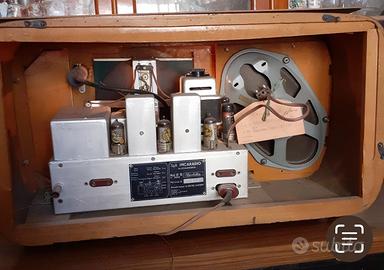 Radio IMCARADIO Mod. Super Nicoletta IF51. Bande OM-OC1-OC2. Provata con ritrasmett. FM-OM: funzionante. Mobile in legno. Dimens.: largh. 58 cm, alt. 31 cm, prof. 26 cm.