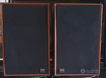 Vendesi rara coppia IMF Super Compact. Interamente restaurate, legno praticamente come nuovo, altoparlanti perfetti. Sostituzione collegamento a vite con ghiera con possibilità di connessione sia con cavo che con spinotto e inclusi fusibili a protezione di Mid e Tw. Suono straordinario come tradizione IMF. Precise e dettagliatissime, basso profondo, componenti di altissima qualità per l'epoca ed ancora oggi offrono resa eccezionale. Possibilità di ascolto a Roma. Preferibile ritiro a mano per le condizioni perfette del restauro.