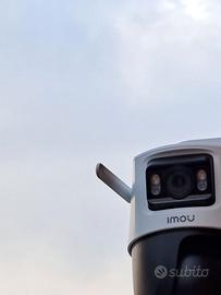 【Doppio Obiettivo & Doppio Schermo】 La telecamera wi-fi esterno dispone di due obiettivi, uno fisso 3MP e l'altro rotante 5MP, offrendo un campo visivo a 360 gradi. L'obiettivo grandangolare monitora l'immagine panoramica, mentre il teleobiettivo rende gli oggetti distanti più chiari.