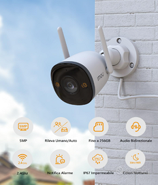 【5MP QHD & Visione Notturna a Colori】Sperimenta con la risoluzione HD da 5MP,Quando la telecamera da esterno wifi rileva una figura umana, i faretti si accendono automaticamente, mostrandoti un'immagine a colori. Così puoi identificare il colore dell'auto o dei vestiti di uno sconosciuto anche di notte.