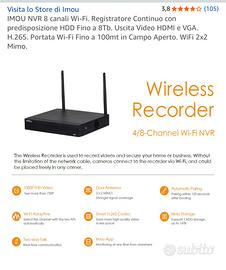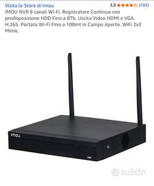 IMOU NVR 8 canali Wi-Fi. Registratore Continuo con HDD da 1Tb. Uscita Video HDMI e VGA. H.265. Portata Wi-Fi Fino a 100mt in Campo Aperto. WiFi 2x2 Mimo.