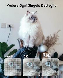 【Tracciamento Intelligente & Audio Bidirezionale】 Quando rileva un movimento, la telecamera da interno acquisisce e traccia automaticamente il movimento, mentre fornisce notifiche ed effettua registrazioni video in tempo reale.Consente una comunicazione fluida attraverso un microfono e un altoparlante incorporati per comunicare con chi si trova in prossimità della telecamera.