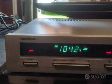 Ciao, non ho trovato nulla in rete eppure questo sintonizzatore IMPERIAL Quartz Synthesizer Tuner ST-1860 oltre a essere molto bello... praticamente pari al nuovo... acchiappa il segnale e lo trattiene con estrema semplicità riproducendolo con dolcezza. Possiede otto stazioni di memoria richiamabili mediante tasti illuminati col numero della stazione oltre alle funzioni comunemente presenti su ogni tuner: selezione banda, ricezione mono/stereo e selezione della modalità di ricerca manuale o automatica. Tutte le lampadine spia sono funzionanti. E' corredato di antenna originale dipolare. Grazie per l'attenzione,buona vita e buona Musica a te. Andrea. Spedisco con corriere.