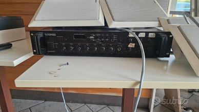 Vendo impianto stereo professionale tutondo così composto. 3 casse da esterno di una ha il piedistallo danneggiato e manca il connettore E quattro casse da interno più un finale Solo ritiro a mano prezzo trattabile