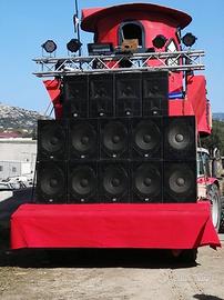 Impianti audio e luci per carri di carnevale,piccole e grandi dimensioni con diverse soluzioni per ogni esigenza.