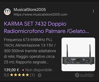 2 microfoni UHF Karma 7432, doppio microfono con centralina singola, 16 canali , tra i migliori per serate e karaoke. non staccano e capsule perfette